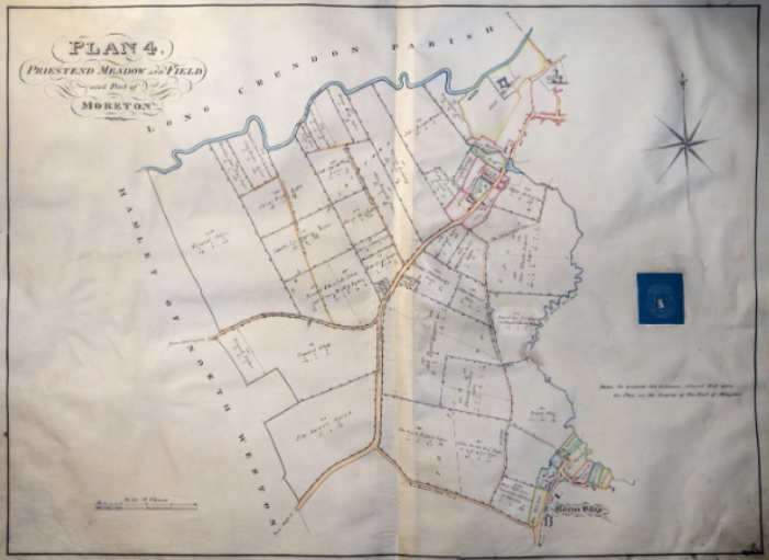Priest End meadow after enclosure in 1826. This map shows the consolidated fields